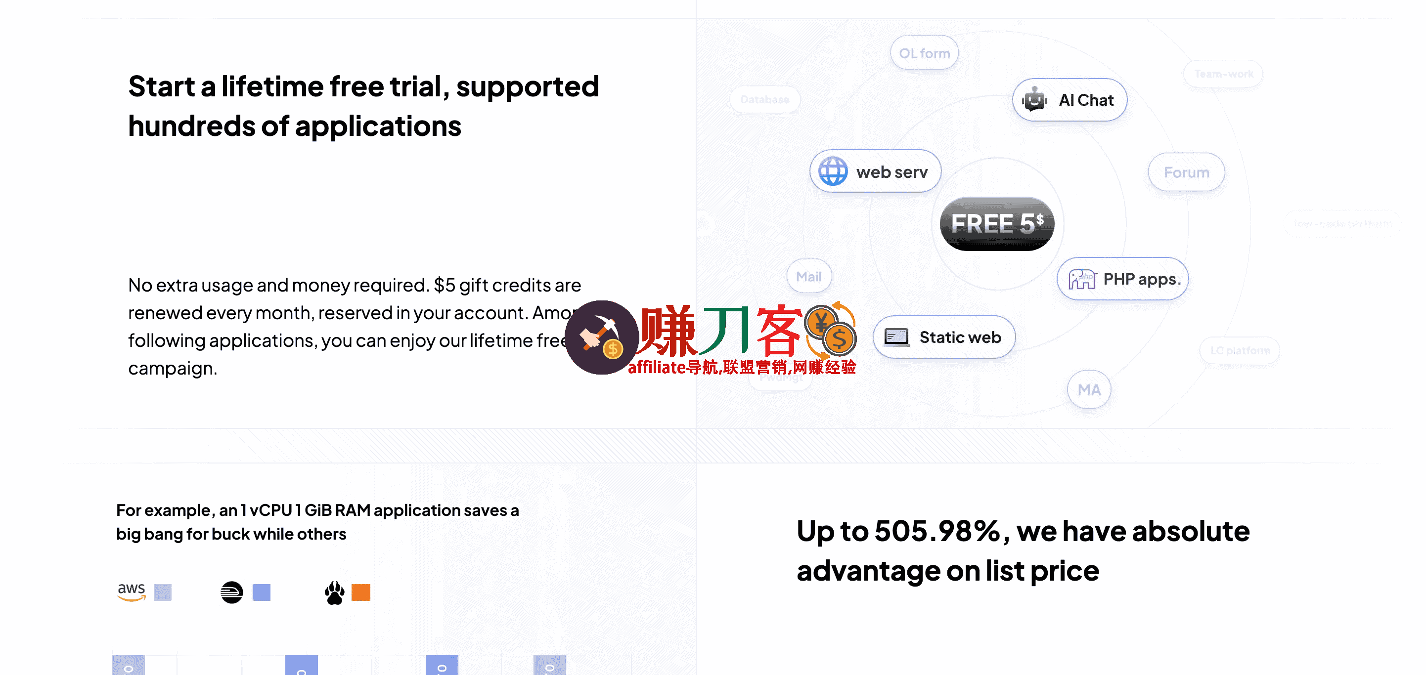 - 注册即送 $5 初始额度,绑定注册超过 180 天的 GitHub 账号后,每月可额外获得 $5 免费额度。该政策为个人开发者提供了极高的性价比,适合部署轻量级项目。