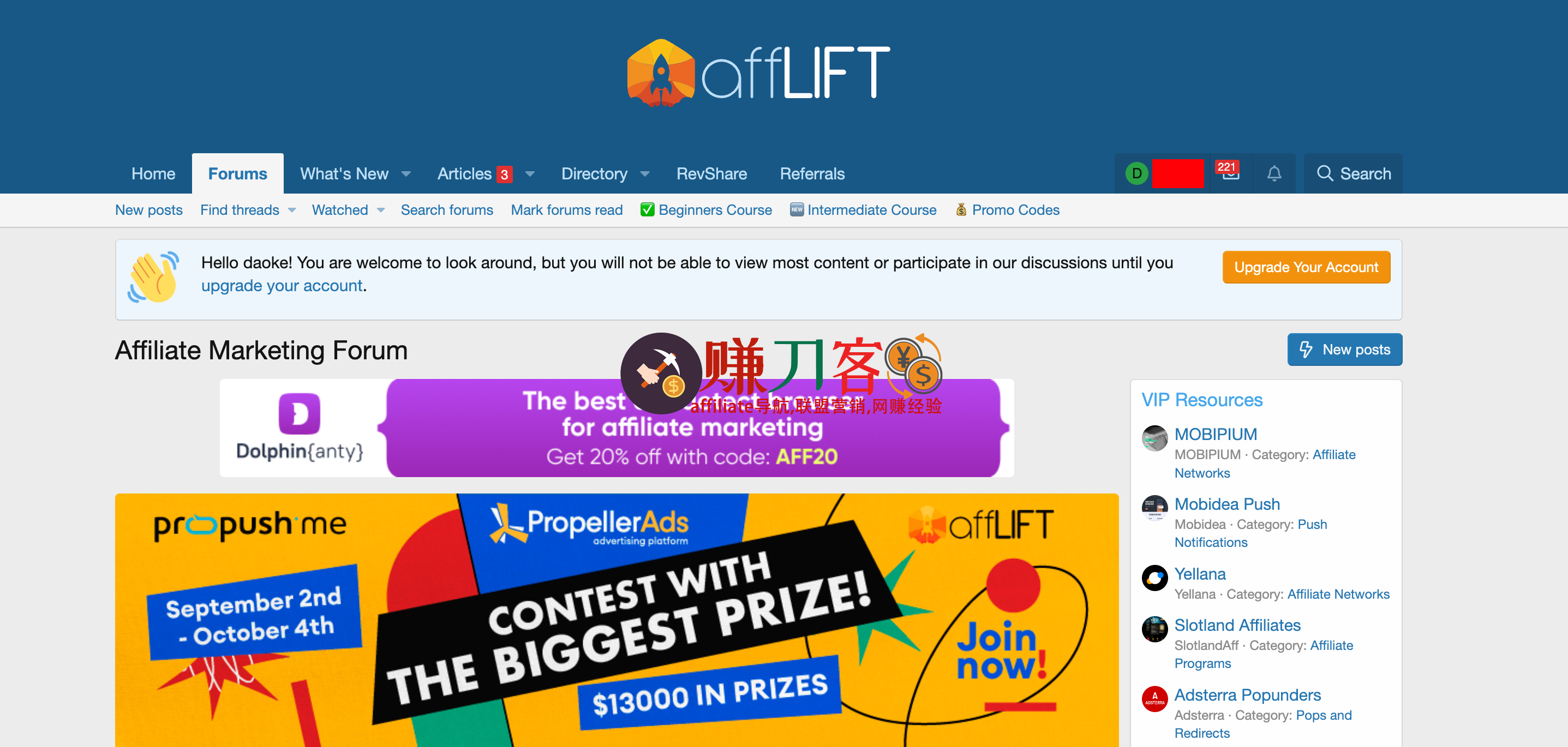 affLIFT论坛主要关注推送通知、流量优化、登陆页面和PPV,从案例研究到工具推荐,为联盟成员提供了将联属营销技能提升到新水平所需的一切。