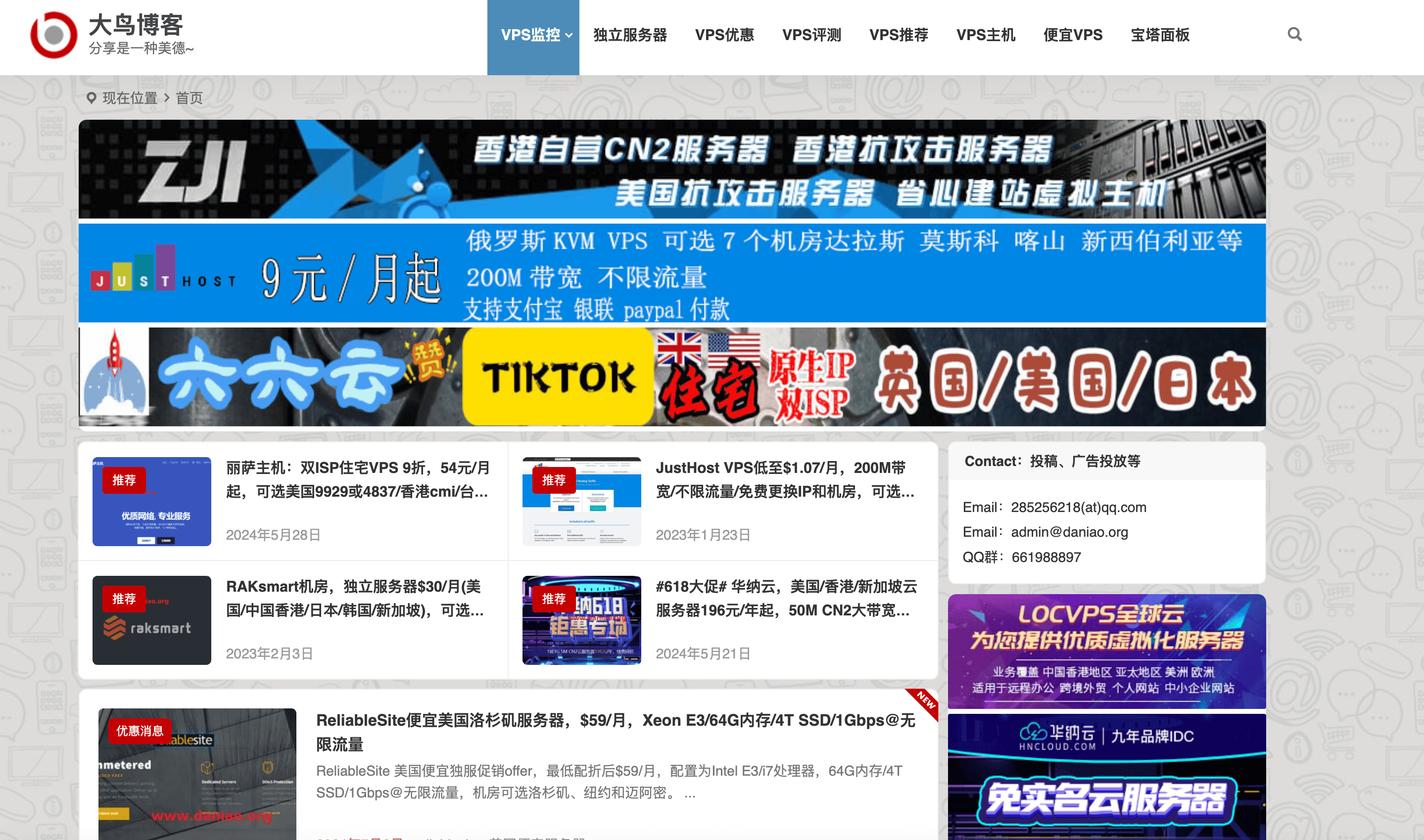 大鸟博客官网,国外VPS、美国VPS优惠码、云服务器、国外独立服务器优惠促销并分享VPS测评数据的主机博客!