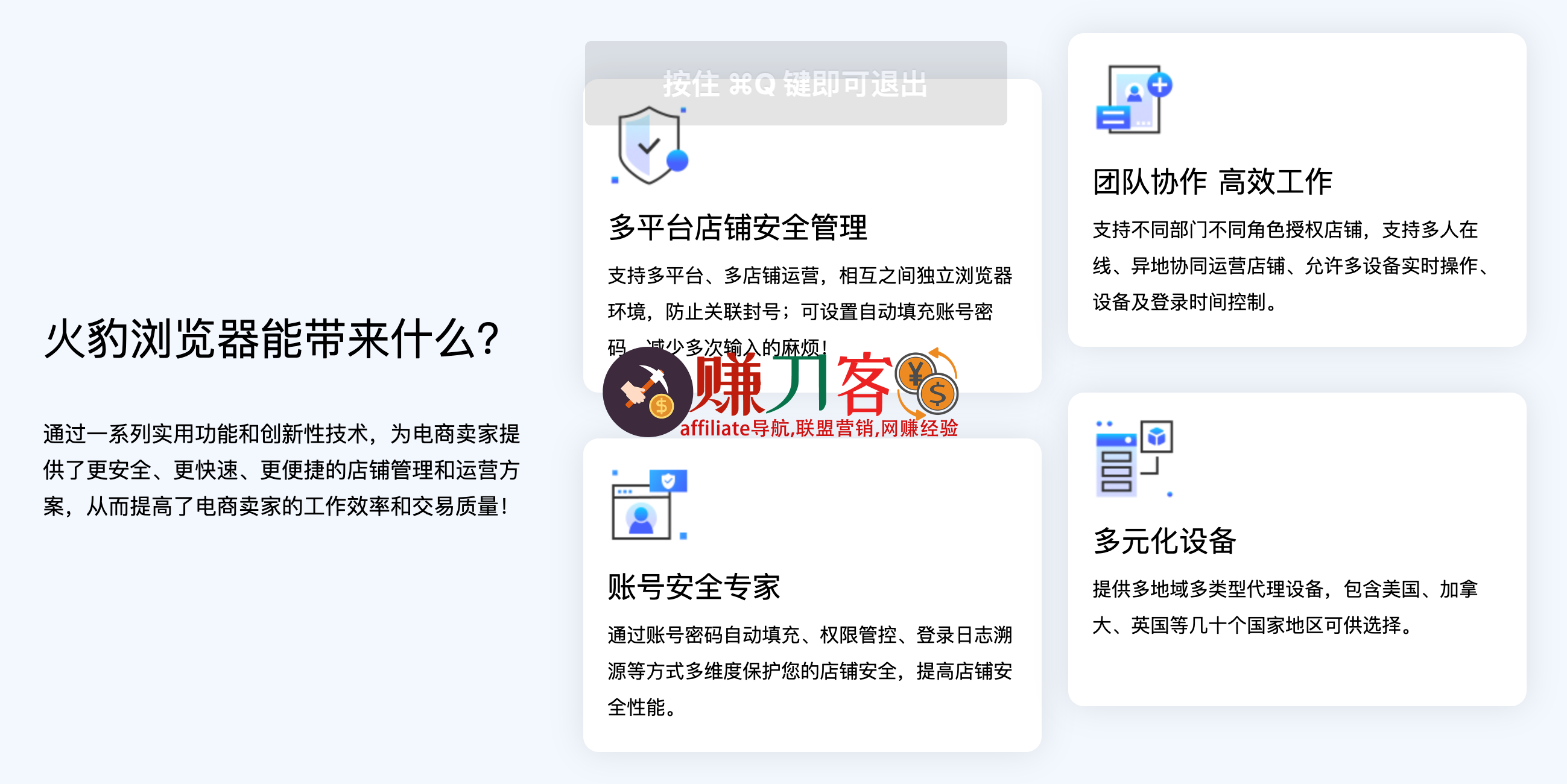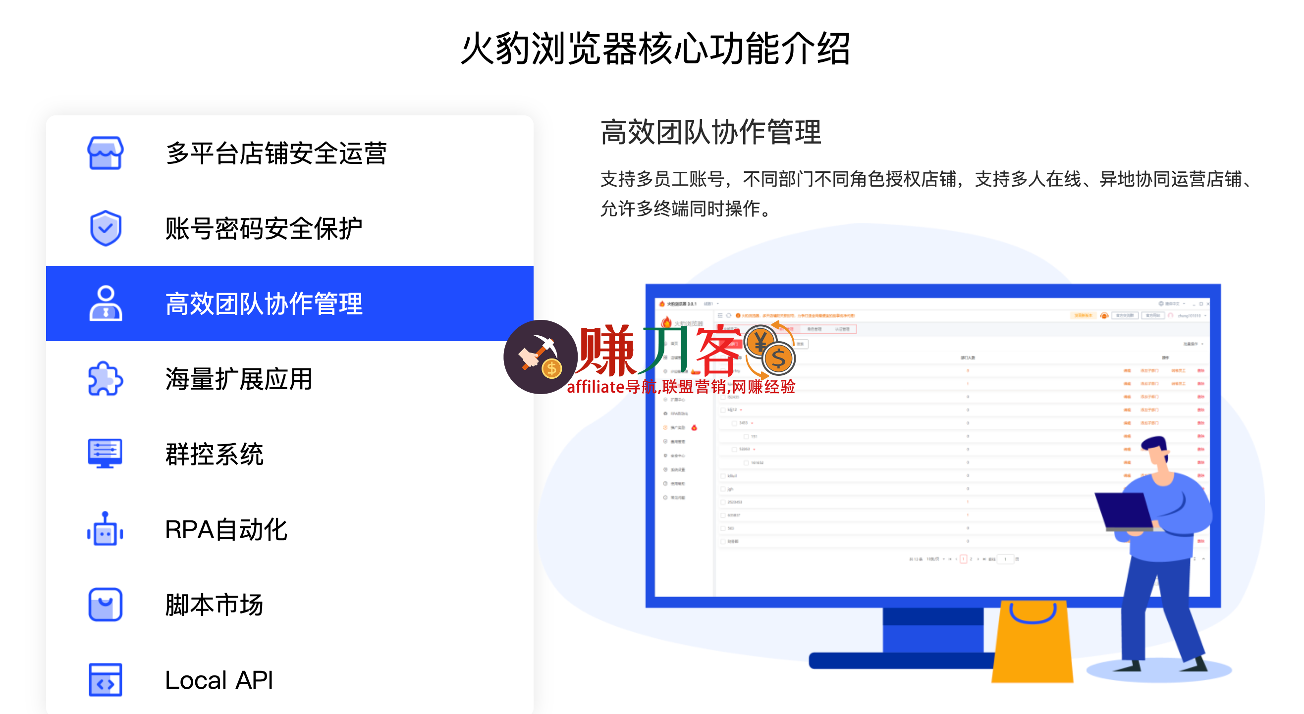 独创的浏览器安全技术及访问加速技术,实现店铺安全访问加速,同时提高跨境运营团队的协作效率。简化跨境卖家的工作流程,提升商业竞争力、运营效率、促进业务增长。