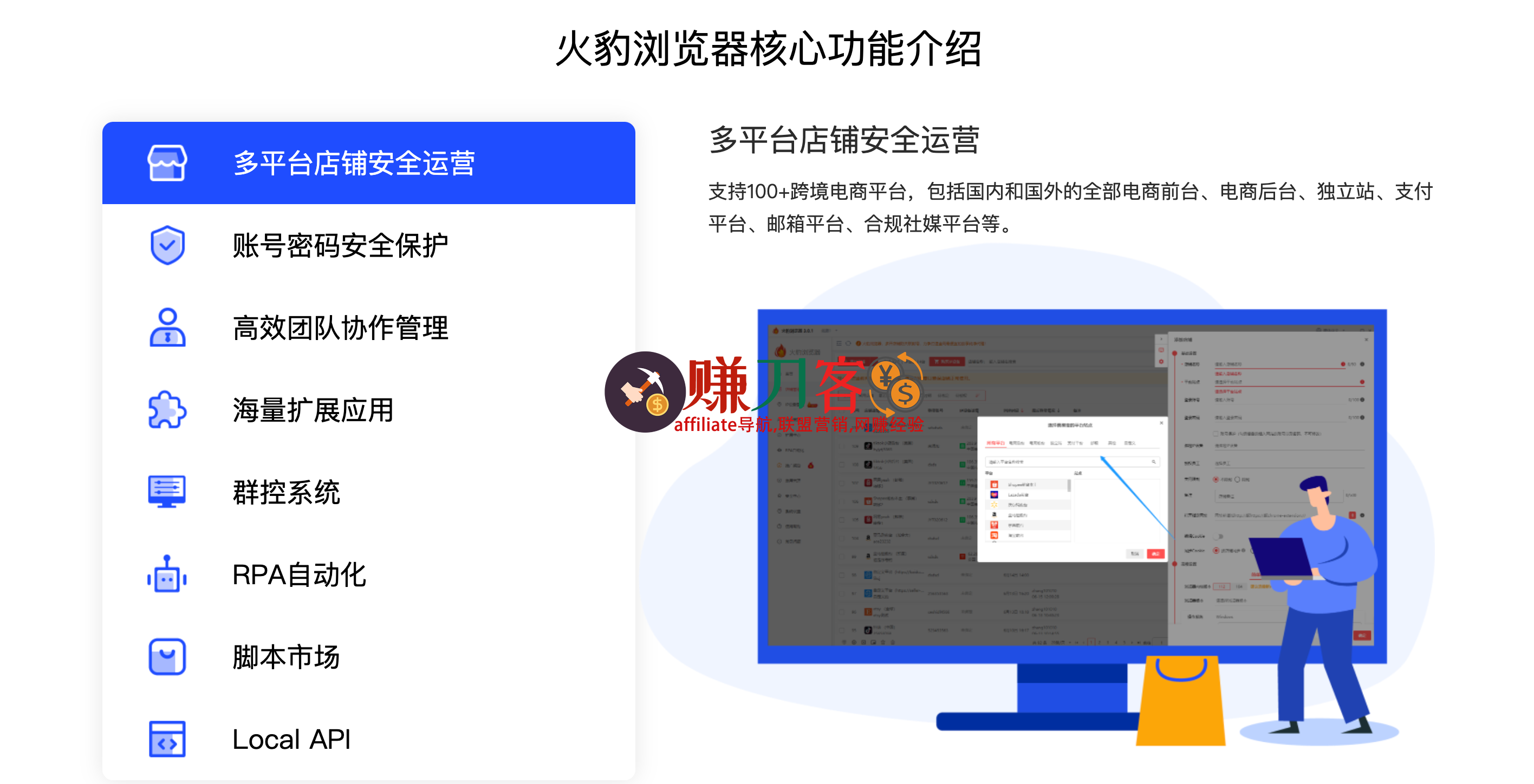 专为电商卖家打造的安全可靠的多店铺运营工具,支持多个电商平台,包括国内和国外的全部电商前台、电商后台、独立站、支付平台、邮箱平台、合规社媒平台等。