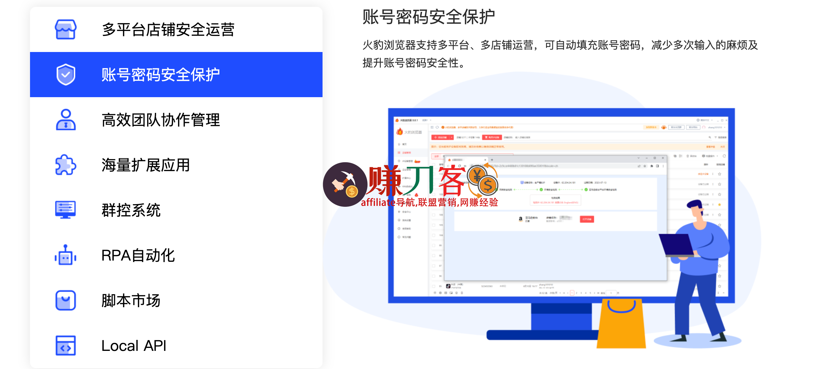 通过账号密码自动填充、权限管控、登录日志溯源等方式多维度保护您的店铺安全,提高店铺安全性能。