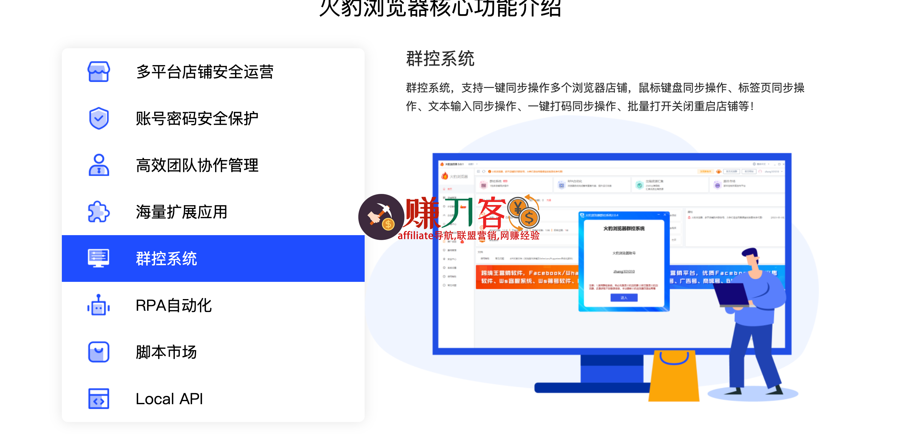 群控系统,支持一键同步操作多个浏览器店铺,鼠标键盘同步操作、标签页同步操作、文本输入同步操作、一键打码同步操作、批量打开关闭重启店铺等!
