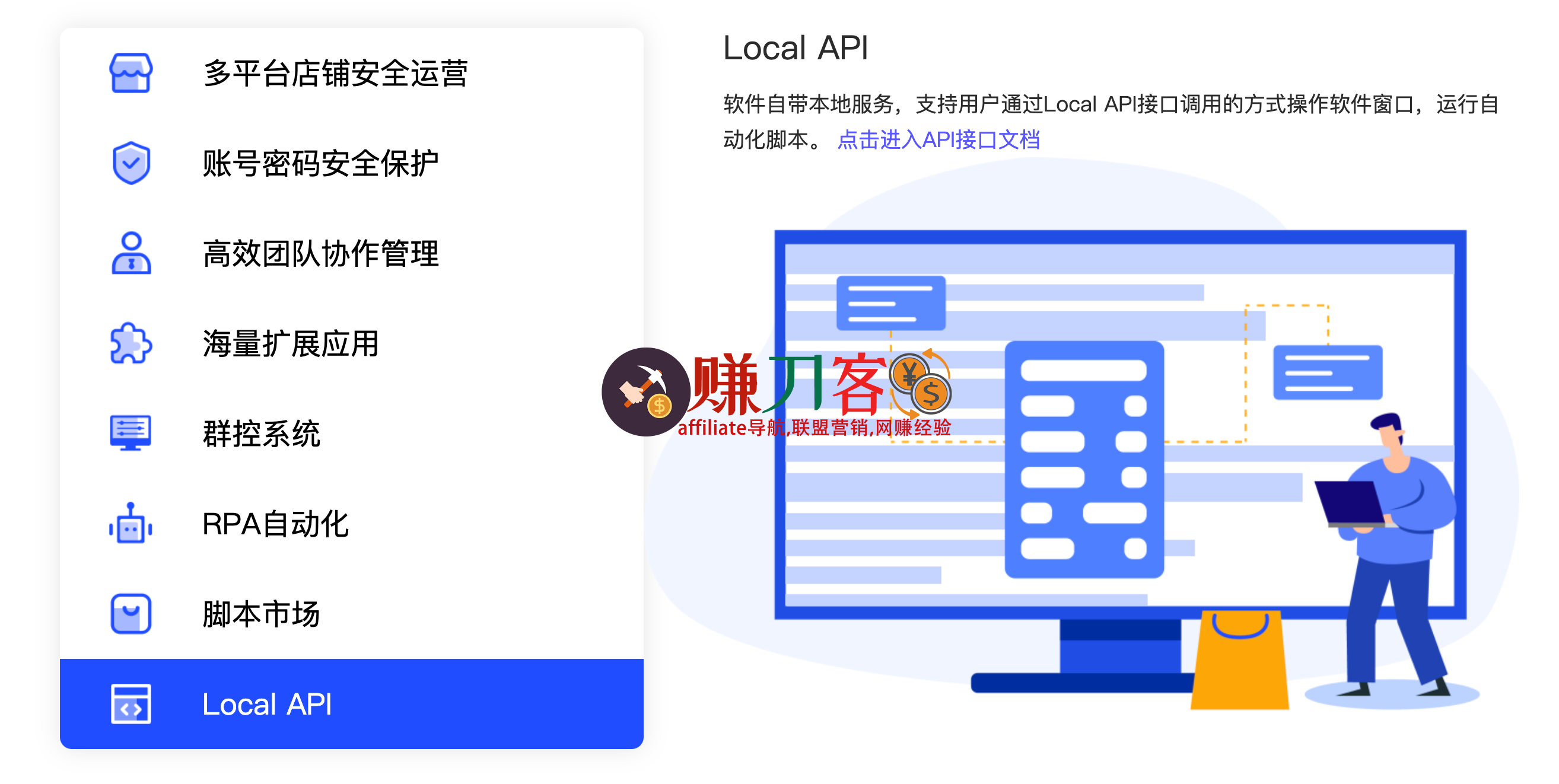 软件自带本地服务,支持用户通过Local AP接口调用的方式操作软件窗口,运行自动化脚本。