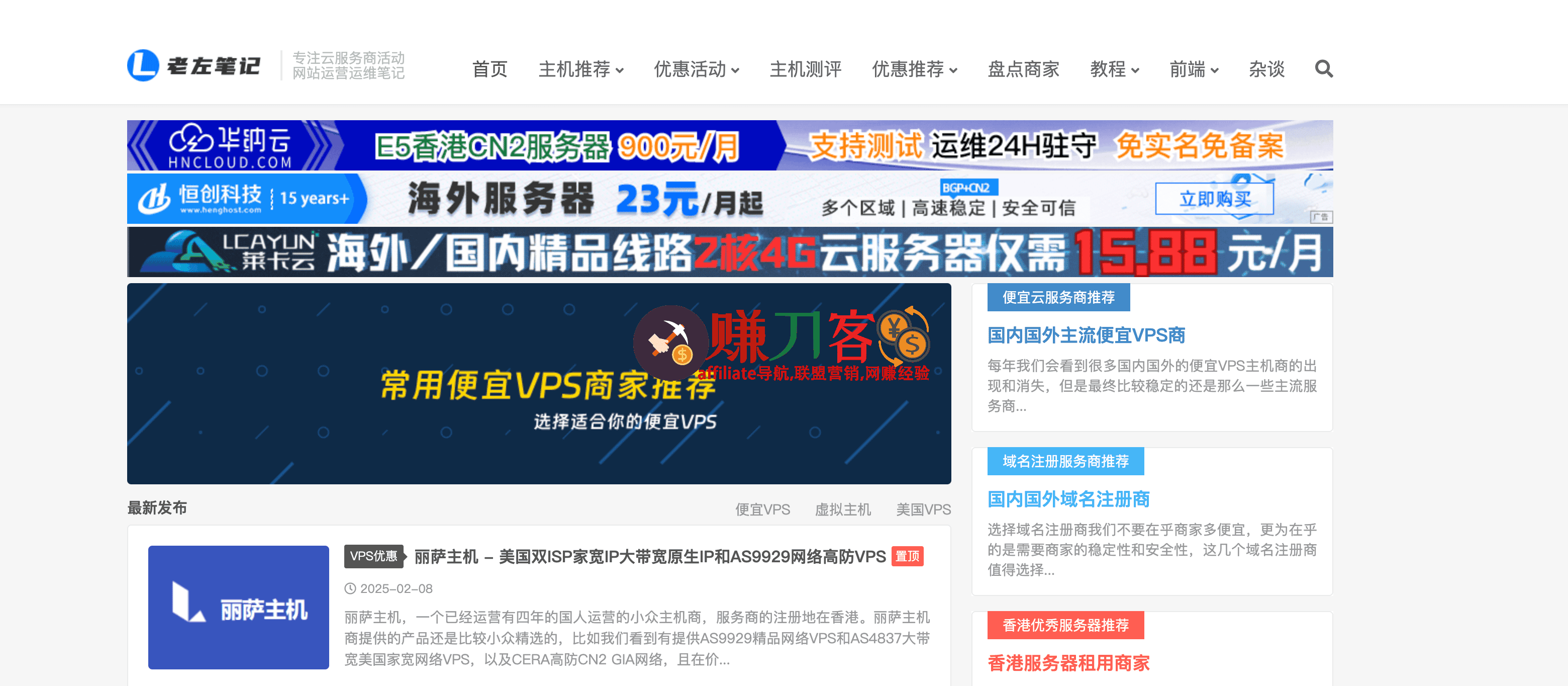 老左笔记官网,专注于建站技术、服务器运维以及VPS优惠信息分享的个人博客