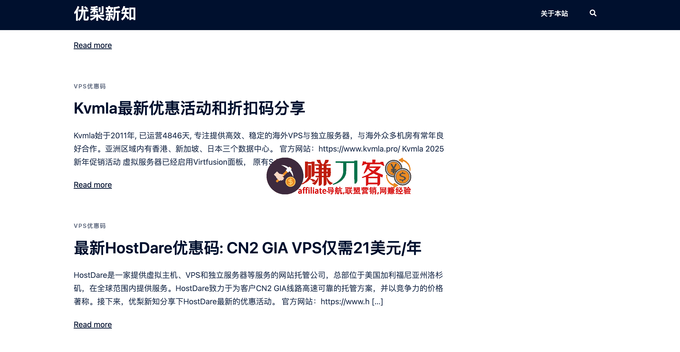 优梨新知(ulixz.com)是一个专注于分享科技资讯、VPS优惠信息和互联网资源的网站。它为读者提供了丰富的技术文章和实用教程,涵盖云计算、服务器托管、域名注册等多个领域。例如,优梨新知曾分享过CloudCone、Vultr等知名云服务提供商的最新优惠活动。此外,网站还提供了一些关于数字游民和自由职业者的实用信息,帮助用户更好地了解和参与网赚项目!
